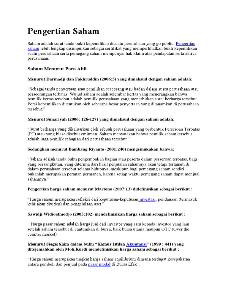 Saham adalah dokumen yang penting dan berharga guna untuk bukti tanda kepemilikan suatu perusahaan. Dilusi adalah penyusutan persentase kepemilikan saham dari suatu pihak yang disebabkan oleh penerbitan saham baru. Mau nanyak mba ratna, rumus utk menghitung kepemilikan institusional itu kan ki= jumlh kepemilikan institusi di bagi jumlah saham beredar.